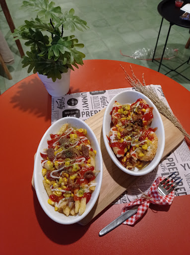 Saya order dari jam 18.04 sampai jam 19. 16 belum dianter juga, padahal duduk pas bngt depan kasir, saya tanya pesanannya masi lama engga karna belom dateng semua sudah 1 jam lebih, pelayannya malah bingung trus minta struk saya, ga lama dateng 4 item minum sama dessert nya doang, makanannya belum di anter, saya tunggu ternyata sampai 19.35 belum dianter juga, sudah 1,5 jam saya nunggu, akhirnya saya samperin lagi saya tanya sisa pesanan saya masih lama engga karna struk saya juga sudah di ambil sama dia, saya hanya membawa struk pembayaran debit, dan sama pelayannya pun bingung dan klemar klemer bangett, akhirnya dia ke bagian kitchen trus konfirmasi disuruh nunggu 5 menit lagi, pesanannya baru dateng jam 19.43, paraah banget pelayanannya, saya liat rating gmaps ternyata sebelum²nya juga ada yg sama seperti saya, tolong owner di evaluasi ya pelayanannya. Trus juga untuk makanannya terutama dessert cookiesnya terlalu tepung banget, cheese cake bagian cream cheesenya kurang lumer ketika dingin. Untuk suasana cafenya walaupun indoor panas banget ternyata acnya yg di nyalain cmn satu...