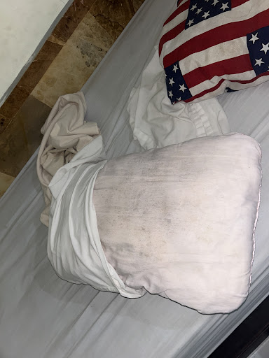 "Room Cleaning" included sweeping the floor, no new linens or towels were given. My bed was made with the old sheets...NO new sheets! 😪 My pre-used towels were rolled up and placed on my bed. 😪