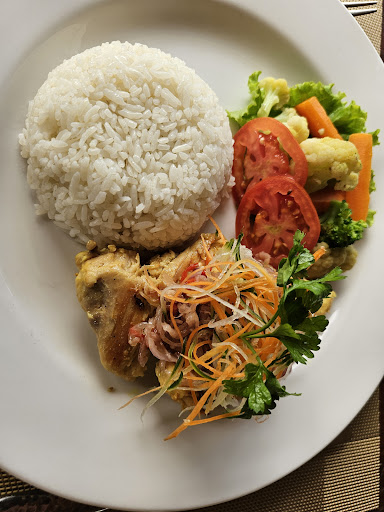 The owner has put a nice story about the location, surroundings and the use of fresh produce but if the cook (or kitchen) can't even prepare a simple Indonesian dish like Ayam Pangang which was Microwaved to death (the kitchen is a kiosk like area with windows all around and very vissible for the people in the restaurant), this place was a massive let down and a disappointing experience. The waitress was wondering why I hardly touched my food and the only thing they could offer was a 10% discount on my dish! The lesson learned is one is better of in a real little Indonesian Warung to eat the authentic Local food than a posh looking place where you pay for the ambiance instead of for...