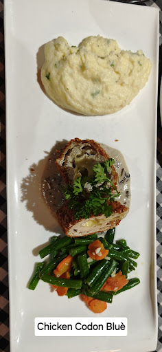 We decided on Mutton Samosa's to share as a starter (with the most beautiful mint accompliment) followed by mains of Chicken Cordon Bluè and Grilled Mahi Mahi, both served with a selection of vegetables and the silkiest mash potato ever. We weren't going for dessert, but the Housemade Cinnamon Ice Cream was too tempting, naughty, but very nice.