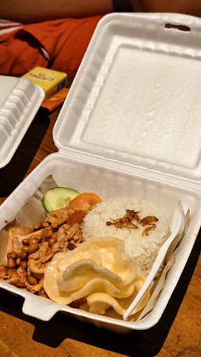 Read moreЯ не понимаю как можно так халатно относиться к еде, ведь вы готовите это людям, а не собакам! Отправила мужа за ужином в это кафе, выбрала по меню chiken with tomato sambal, ни слова не было о том, что эта курица острая! Мне нельзя острое! В итоге, муж привез, открываю этот бокс и меня обдаёт запахом каких-то бобов, хотя бобов там нет, это орехи! Про них тоже ничего не было сказано в меню! Игнорируя не очень приятный запах, начинаю есть. Курица острая, к тому же запах не даёт покоя. Потом муж сказал, что вроде бы перед моим заказом жарили морепродукты, а потом на этой же сковороде и курицу. Ну вы, реально, в своем уме?! Оно воняет просто ужасно! Повару самую низкую оценку👎, неужели нельзя было догадаться, что масло на котором жарили морепродукты нужно поменять, чтобы вкусы не смешивались! Или дома тоже курицу в прикуску с рыбой едите, повар? Ну а тому кто составлял меню, тоже дизлайк. А если бы у меня была аллергия на перец или орехи, и я бы умерла?...