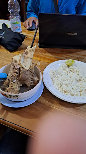 Read morePertama kali datang di Palu, langsung menuju tempat makan ini, khas nya Kaledo (Kaki Lembu Donggala), semacam sup tulangan, berkuah mirip-mirip kuah Konro/Coto Makassar. Porsinya cukup besar, daging dan lemaknya masih menempel di tulang. Disediakan pisau untuk melepas daging dari tulangan. Ada asam, sambel, garam dan kecap untuk meng"adjust" kuahnya sesuai selera. Makanan pelengkapnya, ada barongko, pisang sale, bawang goreng, dan kerupuk. Minumannya ada es jeruk, es cendol dll.