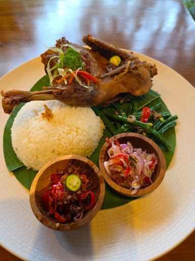 I had the crispy duck at The Sidemen Restaurant – perfectly crispy outside, tender and flavorful inside. Served with warm rice, sautéed long beans, and two kinds of spicy Balinese sambal. Absolutely delicious! 🔥