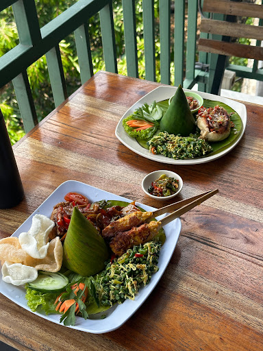 What a great place to sip a freshly squeezed orange (mmm) or lime drink (intense!) topped with a frangipani blossom. An Estonian woman at the next table tucked the flower behind her ear. We loved the slowly grilled chicken and rice steamed in banana leaf. Lots of yummy sides. Everything's prepped to order. So be prepared to wait. Her daughter prepared sambal matah just for us.