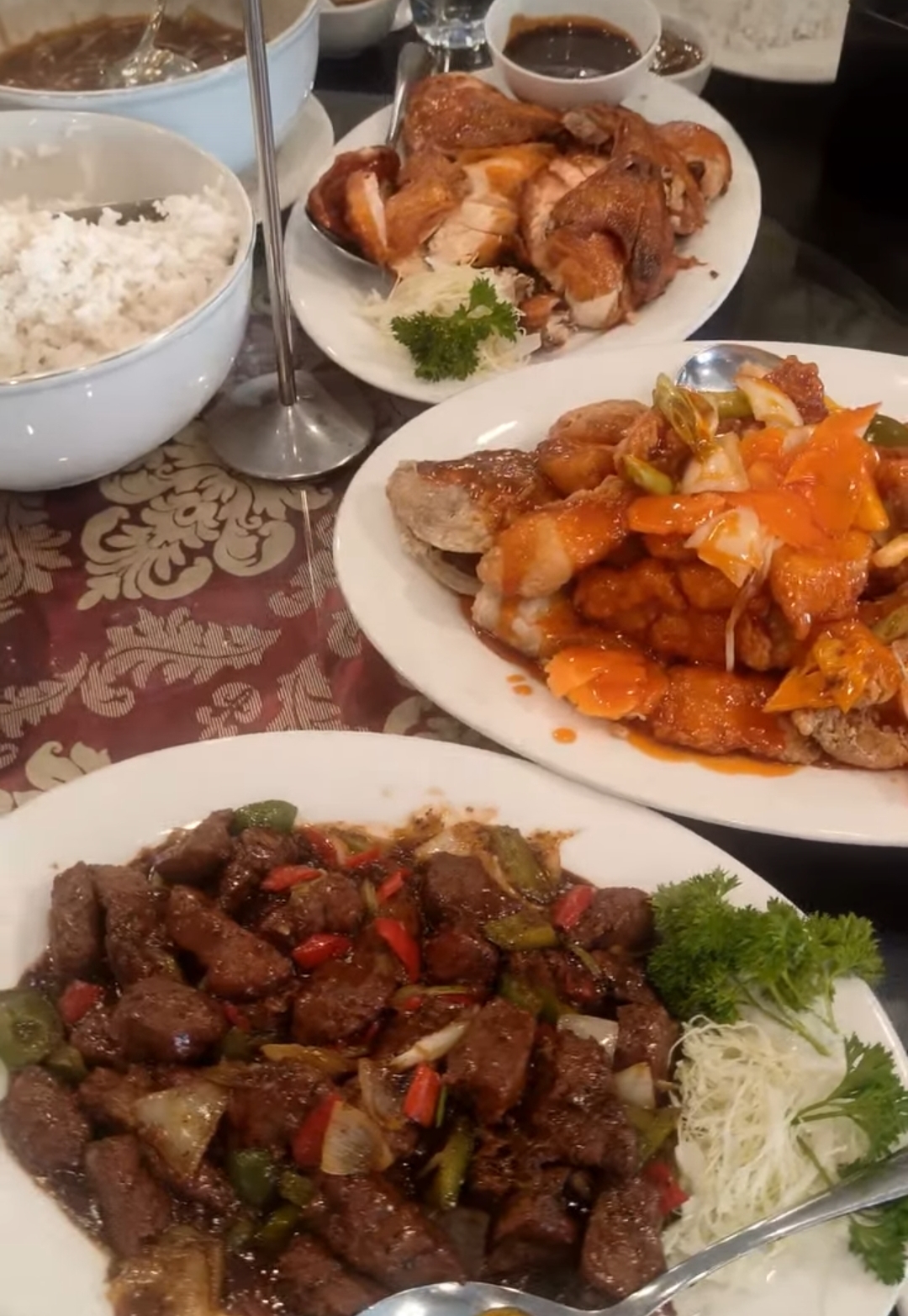 Setelah menunggu setidaknya 20 menit, satu per satu pesanan kami mulai disajikan. jujur saja, saya lumayan terkejut karena porsi setiap menu agaknya lebih banyak dari apa yang saya pikirkan. Menu terakhir pun diletakkan dan rombongan kami mulai menyantap makanan di depan kami dan itu adalah salah satu makan malam terenak yang pernah saya nikmati. Namun maafkan saya karena tidak dapat merekomendasikan satu pun, karena saya tidak tahu menu apa saja yang tersaji saat itu (yang memesankan menu kami tidak lain dan tidak bukan adalah, bibi dan paman...