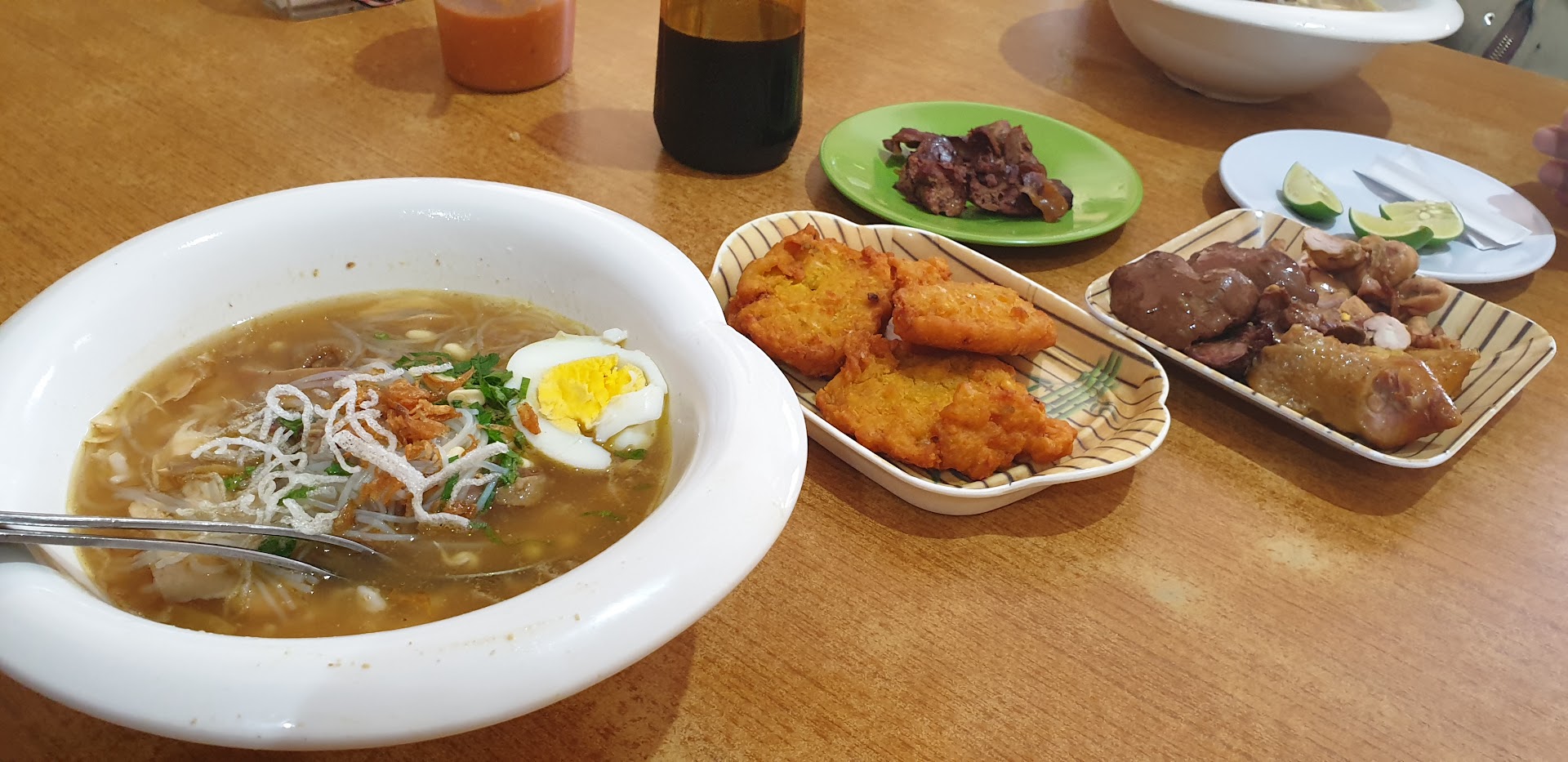 Read moreIt's clear soup soto with free range chicken, similar to that of soto Madiun. The soup is pretty good, but what really shines is the side dishes that you can choose on your own. There's selections of chicken ovals, and so far the best is chicken tail or brutu in Javanese. They properly clean it, and it just melt in your mouth. Other dishes like lemper and tofu also looking pretty good, and the bakwan jagung...