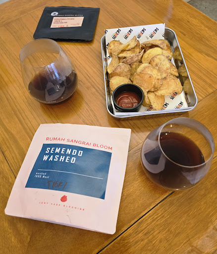 Read moreA well-known coffee shop located near the People Temple Roastery that operated by some professional & skilled baristas. They have recently introduced new slider menu (burgers, etc.) that appears to be pretty appealing. However, as we had already eaten lunch, we only tried potato chips. The potato chips with lime pepper were presented in an appetizing manner. They were perfectly fried, resulting in a crispy texture and a delicious, refreshing seasoning. The cappuccino was satisfactory, with a silky and smooth texture. For the filtered coffee, I opted for the Semendo washed and Colombia Rumah Sangrai Bloom Roastery. The floral flavor notes were quite pronounced, complemented by a...