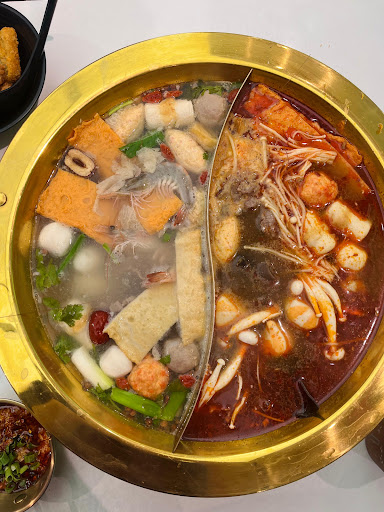 The best value for hotpot, you get what you paid, which is very affordable. Less than 100k/person and you get a personal hotpot with drinks and sauce. I love the milky mala soup. The best part of the sauce bar is they include sesame paste, which is crucial for me for a hotpot sauce. Unfortunately, the beef slices are not the best quality, they are tough to chew. But there's plenty of choices available👍 This place is halal, so no pork on the menu. Drinks, fruit and desserts...
