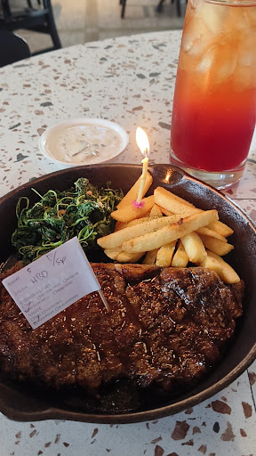 Read moreWe only ordered one sirloin steak just to figure how bad it is from the review. So, maybe this review isnt quite fair.. However, it is really that bad, i must say. The steak came out so quick, no smokey flavor at all, no buttery smell, portion is small, spinach is overcooked, and 1/3 of the sirloin which is the fat cannot be cut and chewed - indicating whoever cooks this doesnt know even the basics on how to properly grill a steak. I personally suspect this is microwaved. Overall this is just like homemade / warung steak, with a much higher price of course. This is a completely different quality with Chef Afit's, i do not recommend eating steak from this place, you can defly get better ones at steak21 with the same price.. No, please go and find and get to Chef...