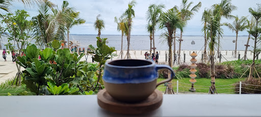 This place is in the middle of ALOHA in PIK2 and the whole area is very happening and popular with youngsters and families. First the View: View from level two of Cafe is beautiful facing the newly developed beach front and Sea. Recommended to sit outside in verandah on Level 2 rather than indoors. It may be hot in day time but they have installed fans too for people dining outside. Overall interiors of Cafe are lovely with strong indigenous elements. Food: We tried Chicken Pastrami Focca with a cappuccino and Pistachio Cromboloni. Sandwich was quite dry and even Cappuccino was a bit cold and served in a pretty small cup. Taste wise it was OK. Maybe we should have tried other bakery items which looked good. Service: Service was a bit slow. People do want to sit outside to enjoy the view. Cost: For a light brunch we ended up with 170K Indonesian Rupiah (~ 15 SGD) per head which isn't expensive given its location and ambience. Overall a good location for a slow and beautiful evening but not v ideal for daytime heat. Also food is also not so great...