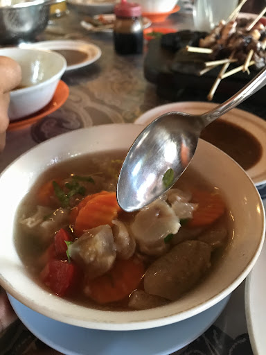 Goat satay is good, the meat is tender and odorless while the liver is pretty solid. Chicken satay is good. Tried the kikil (tendon) soup which is a fragrant clear broth with soft tendon, it was great. Tried also the tongseng (meat in black soybean soup) which has a strong broth, charred taste and tasted very nice.