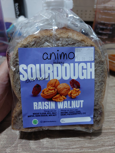 Read moreKunjungan : 12 Sept 2022. Pertama kali nyoba roti sourdough nya. Enaakk! Pas kesana sore jam set.6-an gitu roti tawarnya nyisa 3 pack doang (choco chips, raisin walnut, sama whole wheat). Tekstur rotinya lembut, agak soggy, rasanya ga terlalu asam kok (ya khas roti sourdough aja). Harganya Rp38.000/pack udah incl. Ppn. Paginya makan ini cuma di toast sebentar aja di pan.
