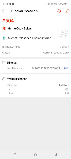 Dapet orderan shopeefood..Udah sampe depan resto,orderan dibatalin dengan alasan resto sibuk.Padahal buat ke resto,butuh waktu 15 menit.Hujan pula. Buat yg punya resto cm mau bilang,punya empaty sdikitlah sama driver.Paling tidak konfirmasilah sblm cancel.Jd ga jauh jauh driver harus ke resto. Pembalasan Driver lebih...