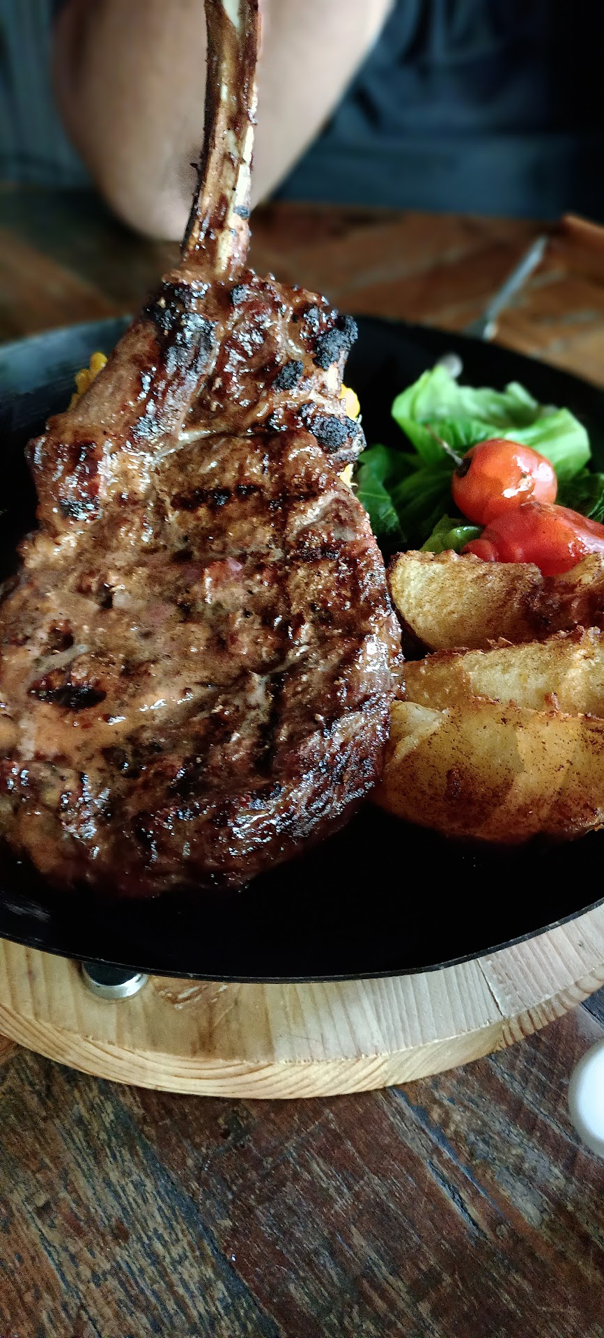 Serunya, porsi steak bisa disesuaikan kebutuhan dengan 5 saus yang bisa dipilih sesuai selera. Tersedia porsi individu atau sharing. Resto ini memiliki steak ukuran jumbo, dari 600 gram sampai 1 kilogram, lho. Ahoyy, bisa bawa pasukan. Biar gak blenek makan daging terus, bisa pilih opsi platters dengan variasi berbagai side dish. Buat yang gak suka daging sapi, disediakan menu ayam, juga tersedia pizza, pasta dan salad. Mau menu DIY? Tersedia DIY burger steak. Eits,buat minuman ada healthy juice buat penetralisir lemak, smoothies dan punch selain soft drink, kopi & teh. Ada dessert juga, ya.Lengkaplah.