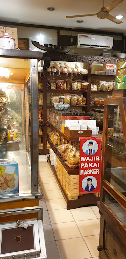 lanjut ke toko, begitu masuk langsung deh surga makanan banget, dari mulai jajan pasar, beberapa lauk, asinan betawi, terus jajan-jajan kering khas oleh-oleh bisa ditemuin disini gaes. nah pilihan jatuh ke jajan pasar seperti tujuan awal.