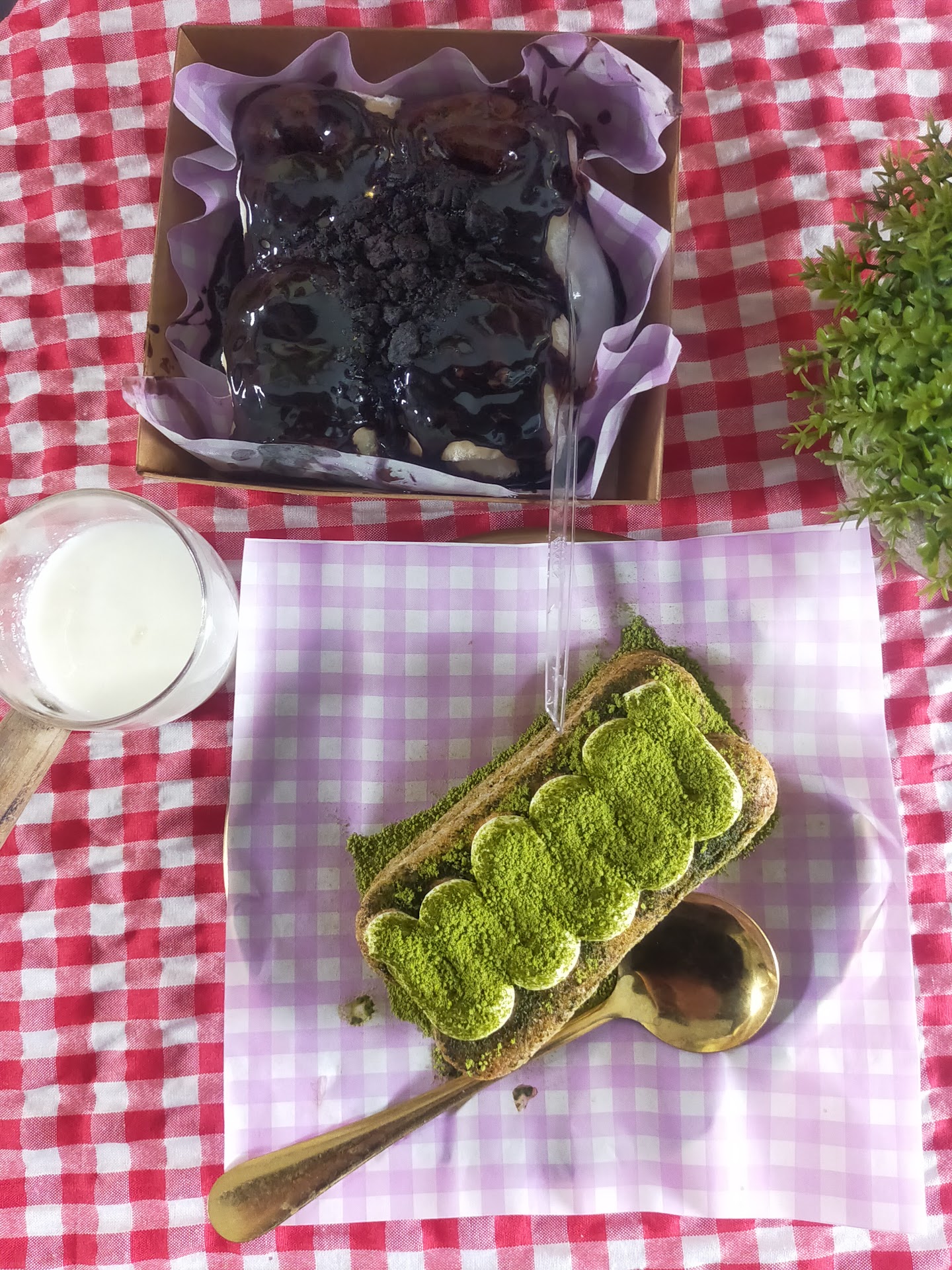 Untuk makanan tadi saya sama temen pesen matcha misu dan choco fuffly bun. Matcha misu nya enak, bagi saya yang bukan pecinta matcha rasanya pas dan tidak terlalu menyengat matcha nya, tapi mungkin untuk pecinta matcha, rasa matcha nya kurang. Untuk choco fluffy bun nya juga enak, cuma kata teman saya terlalu manis.