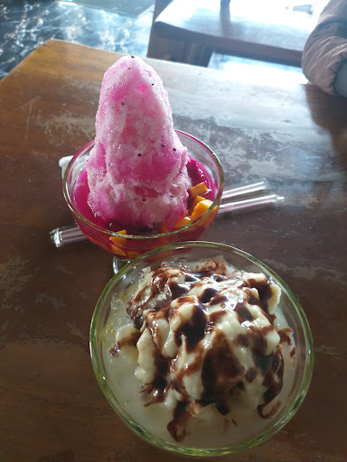 Tempat ngejus dan nyemil2 syantik.. Nongkrong sehat bisa, asal ga usah pake ngeroko yaa.. Harganya standar, rasanya lumayan.. ( tp mnurut gue ga match di es duren nya kasih susu coklat, better susu putih ) Buat yg pacaran lg cekak malmingan disini ga keliatan kok klo dompet tipis, pesen es smangkok be2 sm cemilan, kan jd romantis2 gt smangkok be2 kaann 🤭 Kalo malming ada live musik pula, keren lah tempat jus...