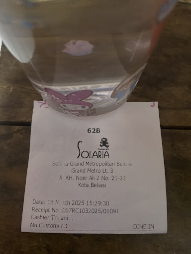 Read moreSaya dpt order Gosend 31 Juli 2025, ambil paket dari Solaria MM Bekasi antar ke Solaria Grand MM Bekasi. Info dari kasir Solaria MM, " dpt ongkir parkir MM dan Grand MM sbsr 6000 ya Pak jadi total yg Bapak terima 19000 ya Pak nanti, yg bayar pihak Solaria Grand MM ya?". Akhirnya saya sampai di dpn kasir Solaria Grand MM & Ngantri gitu, pihak kasir ngeliatin saya bawa barang gitu, trus negur ke saya dari Gosend ya? (Kalo negur gitu berarti dah tahu donk). Akhirnya saya maju ke depan, Anehnya si kasir ini malah tanya ke saya, "barangnya apa ya?". Kok malah tanya ke saya? Saya tugasnya nganter saja, tidak mungkin saya buka2 paket orang. Saya tidak jawab pertanyaan nya, lalu saya serahkan paket tsb, dan dia buka. Lalu saya tanya lagi, yg bayar sini ya? Krn dari pihak Solaria MM, bilangnya dari sini yg bayar. Eh si kasir malah balik tanya ke saya, " udah di bayar belum?". Kok aneh ya kasir Solaria Grand MM ini? Saya yg tanya duluan, malah balik tanya. Akhirnya pihak kasir Solaria Grand MM kasih duit ke saya sbsr 15.000. ya saya terima krn emang ongkos antar paket di aplikasi tercantum 13.000. Tapi tidak sesuai omongan dari kasir solaria MM Bekasi katanya dpt pengganti parkir 6000 jadi totalnya 19.000. saya juga tanya baik2, nama mbak siapa ya? Jawabnya cepat sekali, seperti tidak mau diketahui namanya, sampai 2x saya tanyakan namanya, kedengaran saya, namanya "Etri". Krn saya harus di ketik di aplikasi gojek siapa yg terima paket. Saya juga dah lihat wajah nihh kasir solaria Grand MM, kyknya judes & Angkuh dehh nihh orang. Ternyata bener dugaan saya. Padahal dia lagi melayani customer juga lohh, customer di cuekin gitu, saya sudah bilang, layanin aja dulu tuhh. Tapi tetap aja customer tsb di cuekin. Baru saya nemuin kasir Solaria Grand MM seperti ini. Bgmana kalo saya sbg customer untuk makan disini ya? Kalo dilayani sama kasir seperti ini? Attitude nya...