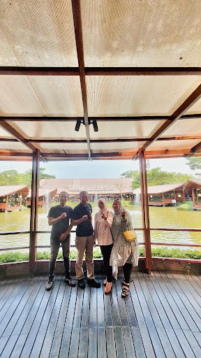 The restaurant itself has a cozy and rustic ambiance, with wooden tables and chairs, traditional Sundanese artwork, and beautiful views of the surrounding nature. The attentive staff is dressed in traditional Sundanese clothing, which adds to the authentic atmosphere and experience.