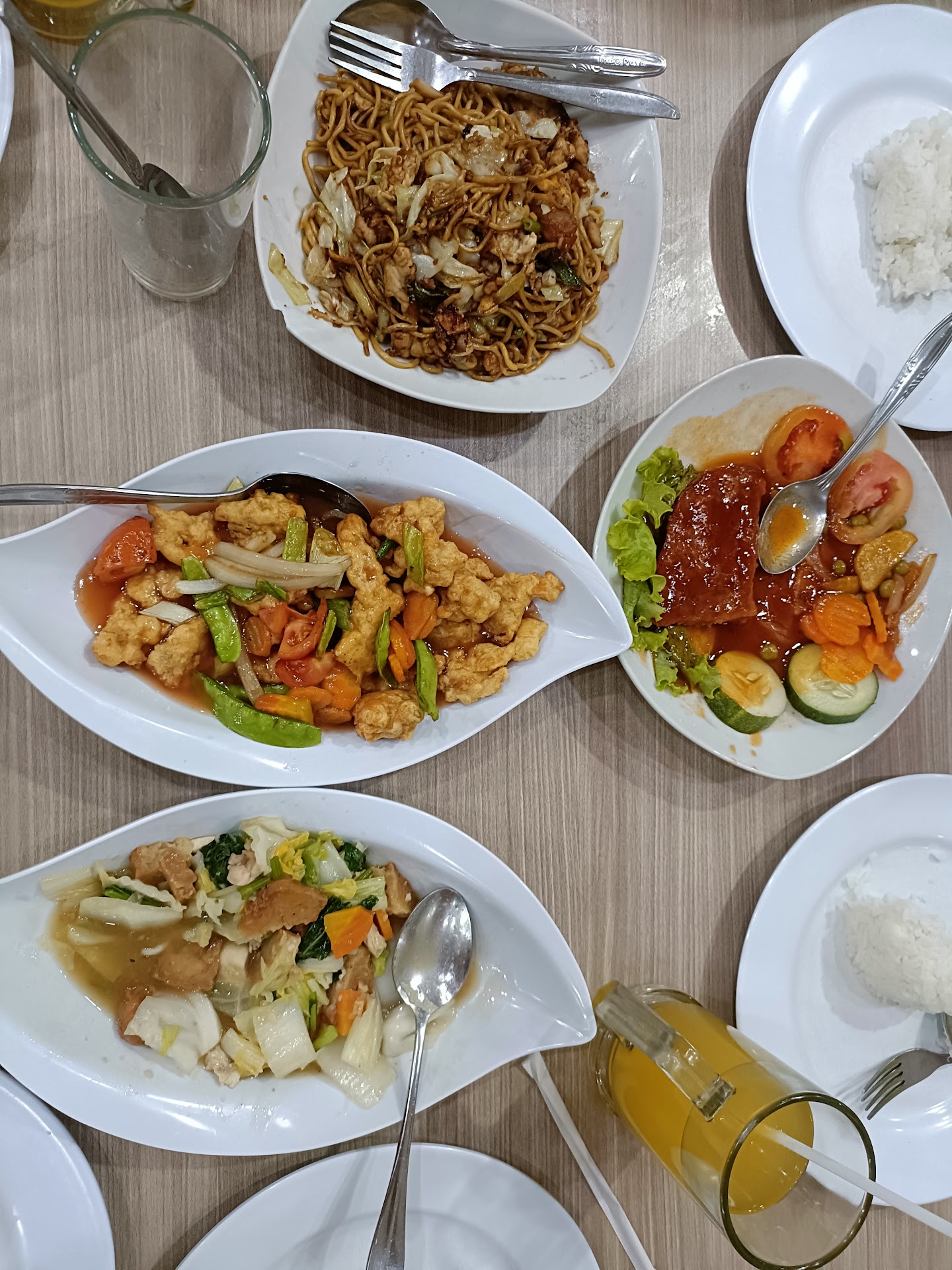untuk rasa cenderung manis dan enek, acar yg disediakan kurang mampu mengatasi rasa eneknya. untuk rasanya terus terang jauh dr ekspektasi karena rumah makan chinese food identik dg bakmienya. rasanya lumayan si tp karena menggunakan mir kuning jd bau mie kunignya lebih dominan. untuk koloke potongannya besar2 dan enak hanya sayangnya kurang asam. untuk cap cay gorengnya enak si cuma rasanya cenderung plain. untuk bistik ayamnya dagingnya tebel cuma cenderung agak keras, sausnya banyak dan enak. untuk minuman jeruknya sangat asam jd saat pesan sebaiknya dituliskan minta jeruk manis saja, untuk yg kami pesan sangat asam meskipun sudah tulis minta yg manis tapi boleh kok minta air gula cairnya kl g tahan asamnya.