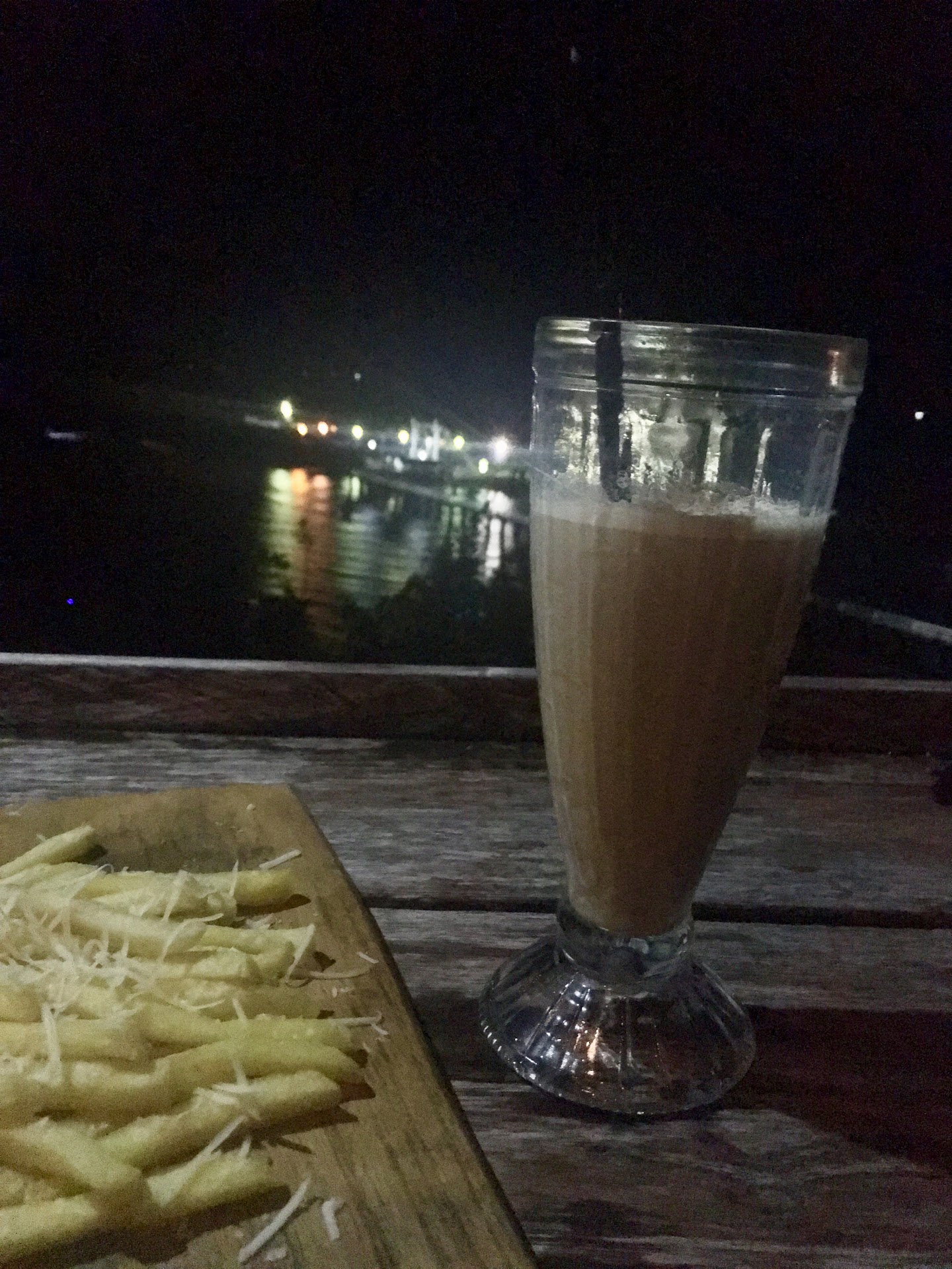 The cafe is located right above the a cliff with a view facing towards another island, and right next to what the local says “old harbour”.