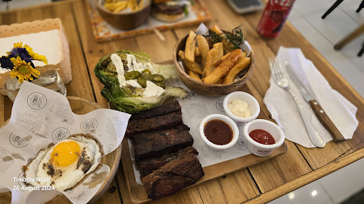 Was really looking forward for a satisfying burger and chicken wings. Unfortunately it was sad. The burger was just lack of patty and more of the sauce. I was thinking this was probably due to the burger that I ordered but when I asked my neighbour table, they didn't like the burger as well. Fries was air. Lack the original potatoes, tasted something like they took it out from the bag at toss it in the fryer. Not what I was expecting for the price I paid. My wife ordered chicken wings. It was horrifying. So sad. The chicken had tooo much vinegar in it. Totally a waste of time to try it.