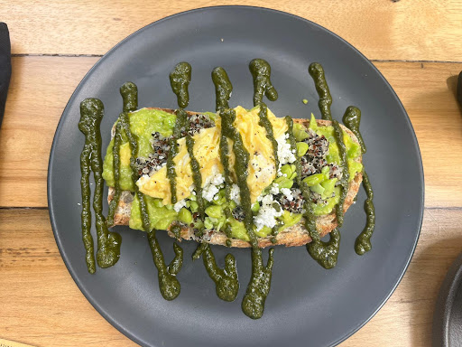 I ordered the poached eggs with kale and hummus on toast. Sadly, the bread tasted old and oily, and most of the dish was drenched in fat with very little flavor. The seasoning was minimal, and while the eggs were perfectly poached, they were cold, as was half the plate. The dish lacked coherence and warmth, both in flavor and temperature.