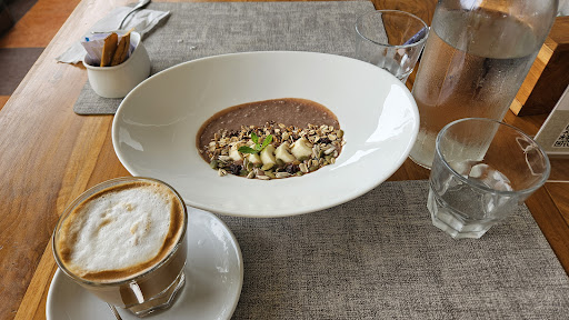 The menu is new, nice, the breakfasts are interesting to try, the price is pleasantly cheap. Coffee cappuccino was brought to me in a glass, and not very tasty. Most likely from an automatic nespresso machine or something like that. the taste is bitter and too milky. As a compliment before the meal they gave me a small pretzel with tomato jam, not bad, plus for you. They give you a bottle of water.