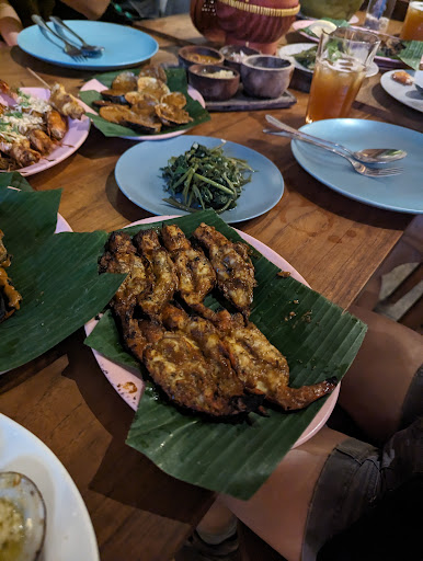 Read moreReally wanted to like this after reading the reviews and craving for some grilled seafood, but unfortunately not all was good. First off, if you're seated outside, the atmosphere would be awesome if you're looking for a sea view and going for the sunset, which we were. However, you're then at the mercy of the weather and other patrons. Unfortunately, it was quite cloudy when we dined, so we didn't really catch the sunset. There were also smokers at the table right next to us, which made the experience worse than it could've been. Lastly, it started raining soon after we ordered, so I had to rush in to grab a table for my large family, which fortunately I did, but that meant no more sea view. Food wise, we got the Jimbaran seafood platter for 4, which came with fish, regular prawns, crab, vegetables, clams, satay, and 4 drinks from the tea section. We added 200g salted egg tiger prawns (3 prawns) and 500g garlic butter clams. The fish was very good, but the rest were not that great. Regular prawns were quite powdery but the tiger prawns were good. Vegetables were quite tasteless. Crab was hard to deshell without the proper utensils.