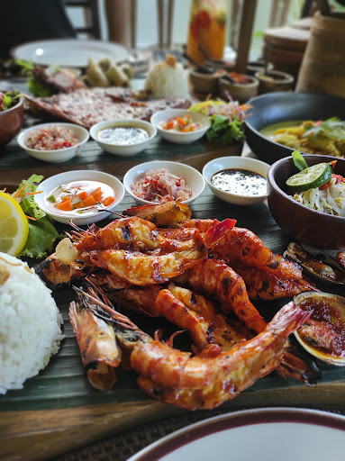 Absolutely sublime. This place is the best restaurant in Jimbaran. Nothing to say about it. The staff is super welcoming and friendly. The place is quiet, relaxing and perfect to rest after a day strolling around Bali. The seats outside in the garden are the cherry on top of the cake. We got a couple of cocktails to begin with. The one I took was with ginger, Cinnamon, lime, scallop and sugar, and it was just perfect. They brought us some sweet fried chips and a crunchy bread to go with 5 different kind of sauces. Despite s After that we went with 3 appetizer as we wanted to taste different stuff. They were duck, mushrooms, and fish based All three of them were tasty and disappeared almost immediately. As main meal we went with smoked duck, absolutely fantastic, and a huge plate with lobster, prawns, and shrimps. The second one I cannot describe as my wife obliterated everything on sight in no time. So I suppose it was ok... With the main meal I ordered a glass of local white wine,while my wife had a bottle of mineral water. Unfortunately we didn't manage to order the dessert. We were full like eggs.