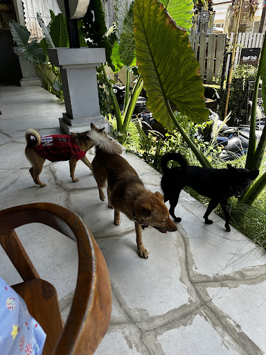 Read moreOne of the worst experience dining in Bingin area. First, no one welcomed us which was not a big deal but it was confusing whether or not we should just sit anywhere or we need to wait to be seated. Two, our waiter was not trained well, with a place and price they have, we expected better service. The way the waiter spoke was very insincere maybe because we're Indonesian? I asked to change waiter but he insisted to serve us; should have left the restaurant at that moment. We wanted to order nasi goreng with no eggs mixed in the rice because of allergies and we mentioned it several times but the food took a while and after one main course came, a different waiter asked about the eggs (prove my suspicion about the first untrained waiter). Third it took 25 mins for our coconut to come out. Last and the most annoying part was the dogs, there were around 7-10 dogs and it was chaotic, I believe there were a pet sitter service that were one of the customers and stayed there. They were bothering alot of the customers. The staff didn't do anything until I mentioned it to them and ask for help. These were a few of the dogs when they were passing by our table slowly. Never...
