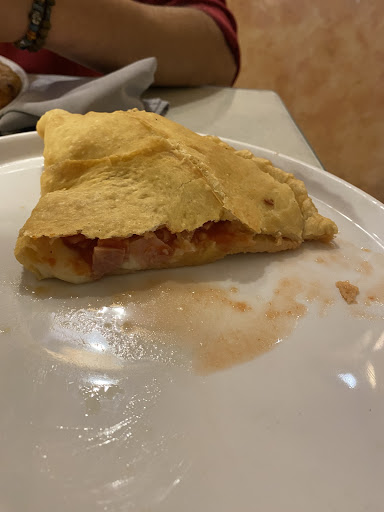 My friend had the Calzone (folded pizza). Mushrooms were out of the can. Same bland boring tomato sauce. For my taste way too much topping (should I say filling), which made it totally soggy. On both pizzas not a hint of any italian herbs, instead there was some dried parsley (!) on the Calzone.. come on guys!