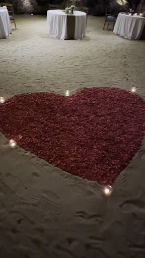From the moment we arrived, it felt like stepping into a dream. The setting inside the cave was surreal: candlelit, covered in rose petals, glowing lights above, and the word LOVE welcoming us at the entrance. It was intimate, magical, and unforgettable.
