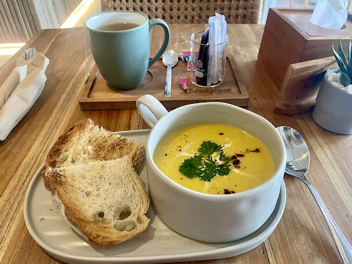 I visited this spot on a Thursday afternoon and was pleasantly surprised by the overall experience. The atmosphere was calm and inviting, and the place wasnāt too crowded, which made it a perfect time to enjoy a relaxed meal. I started off with the pumpkin soup, which was beautifully creamy, full of flavor, and served at just the right temperature. It had a comforting, homemade quality to it that made it a standout starter.