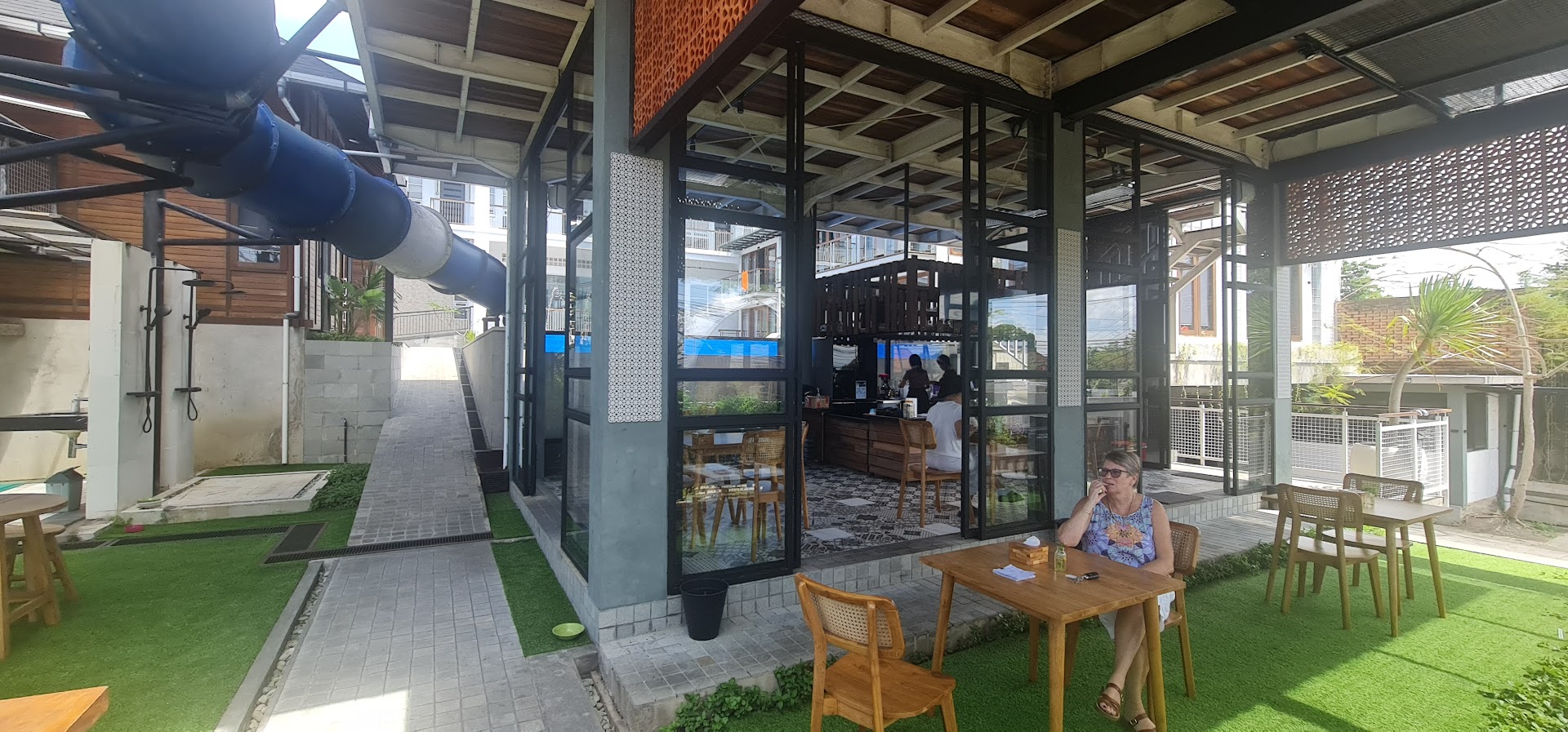 I stayed at this hotel with my dog.First and foremost, the staff were very friendly, making our stay very comfortable. The pool was spacious and featured a slide, providing fun for children while adults could relax by the poolside. The room was ample in size and equipped with fingerprint access. Conveniently, the bed had USB ports and power outlets. Although the attached café was small, it offered delicious food at very reasonable prices. There was also a working space available, making it ideal for digital nomads. Motorbike rentals were available, and the parking area was spacious. Considering all these amenities, the accommodation cost was unbelievably affordable.For those planning to visit Nusa Dua or Jimbaran, or even easy access to airport or Kuta or Sanur, uluwatu area, I highly...