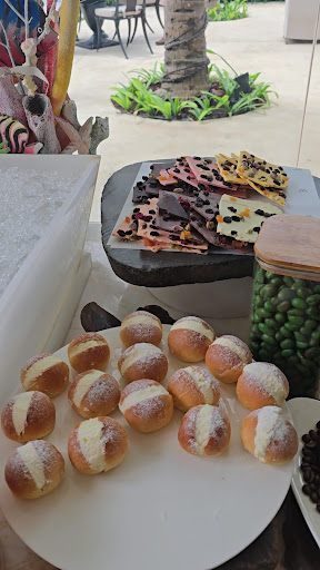 FUNNY STORY- This was my friend's and I first time in Bali, and we wanted to treat ourselves to a lovely Sunday Brunch, and Soleil at Mulia was highly recommended. We were thinking that this was just a standard buffet experience - meaning you go up to all the different tables, maybe bring back a couple plates of various foods to your table, and eat until you're full then leave when you're done eating. Throughout the hour we were there, the staff kept bring us various appetizers apart from our multiple buffet plates we had at the table. We were so confused, asking each other "did we order this?" because there wasn't a menu and saying "I don't know what's happening anymore". We thought "oh maybe this just a little, 1-2 amuse bouche before we get food from the buffet, but the plates kept coming! Our stomachs were so full from the buffet and all of the appetizers. We asked for the check and EVERYONE AROUND US (guests and staff) were so shocked that we were leaving so early. We asked them to explain the experience to us again, and turns out, this was a buffet AND an a la carte experience. There were more a la carte plates coming (we were going to miss out on a pasta plate, some more meat appetizers and desert a la carte) and the entire experience was booked until 3pm (our reservations were at 11am). In other words, THIS IS A 3-4 HOUR BRUNCH EXPERIENCE. We were laughing at our misunderstanding with everyone but also we were so full we could not fit into our dresses anymore (the laughter was an ab workout). Looking back at the experience, I do recall people not lining up for the buffet tables and everyone was eating very small portions. When we went to get some deserts, the staff member at the table even asked "desert already?". Now we know why!