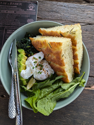 First the good things. The eggs, avocado and focaccia was fresh and tasty. Nice music, relaxed vibe and green garden area. The girl at the counter was lovely, smiley and helpful. The not so good things. It's a bit too gypsy chique haha! Like not the most clean and professional setup. The iced cacao coffee was quite watery, tasteless and small. (later had a much better one at Milk and Madu). The croissant was fresh but very soft. (like one from 7/11). Not that crisp exterior you'd expect especially from a so called bakery. The guy who works there shouldn't be in hospitality. He had a bit of an attitude. He didn't see our gestures to order a few times so after 10 minutes we went up to the counter and he pointed at the menu "order at counter" written in the bottom right corner at bottom. Most cafes are table service, so if they're not then he simply has to say please order at the counter when he passes the menus. There were other moments his attitude was off such as bringing the food and saying nothing. Just do a different job that doesn't involve serving others if you don't like it mate. Overall a nice place but needs a few...