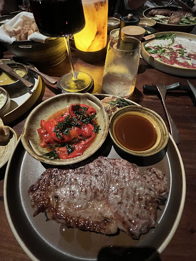 Read moreWe walked-in at dinner time after our excursion to Nusa Penida, and a table was available for us. The architecture and design of the restaurant was amazing with a Texan vibe. The crews dressed like cowboys, complete with boots. Upon arrival, we were served cold wet towel to freshen up. They were very generous with the breads; cornbread, sourdough and potato buns were served that night. The wait staff was very accommodating, attentive and friendly. I already requested the restaurant menu in advance prior to our arrival in Bali, so we pretty much knew what we were going to order. We ordered quickly because we were already hungry. We ordered Smoked Wagyu BBQ, Tenderloin Black Angus Tenderloin. The steak came with a side dish, sourdough we chose grilled blue cabbage. We also ordered organic grilled vegetables with romesco sauce. The foods arrived within 15 minutes. The ribs, with its homemade rub and marinated 24 hours in advance, was so tender and delicious. The steak was done medium done perfectly. We really enjoyed our dinner that night at our own pace. It was not rushed or anything like that. The restaurant also served hs a complimentary rosemary chocolate as dessert. I was pleasantly surprised by the gesture, and the chocolate flavour profile was something I experienced for the first time. Beautifully balanced and sweet. The chocolate also had a edible QR code for us to write a review. Overall, this is the place to go if you want to indulge yourself and to end your trip with fine meats. Tue restaurant pride itself in sourcing the best meat from a few locations from around the world. Best to reserve your table in advance to avoid...