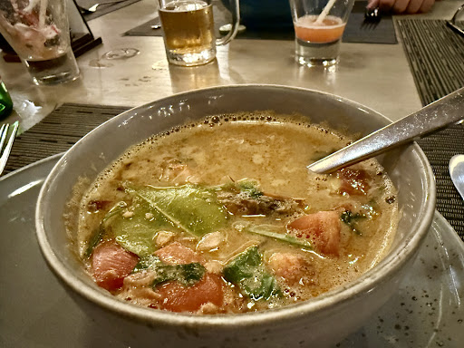 I started with a tuna salad and had a steak for my main. Both dishes were fine, but nothing memorable. The steak itself was inexpensive but good, although the sides on the plate weren’t impressive. My wife had a Thai-style soup, which she thought was rather good, followed by a tuna steak, which she also enjoyed. Our son went for brisket — he really liked it, and that was probably the best-rated dish of the evening. Our daughter stayed consistent and ordered a hamburger, which she found quite good.