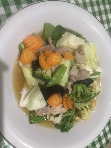 I ordered pork capcay and my husband ordered toast with scramble egg. My capcay definitely needed to stay in the pan longer. They might do it on purpose so the veggies remained crunchy, but honestly itâs so undercooked (that made me questioned the pork as well). The taste was OK but the crunchy raw texture of the veggies was not my thing. At night I threw up and got sick, not sure whatâs wrong but the whole capcay was out. My husbandâs order was not bad tho. Yet, thatâs gonna be our last time...