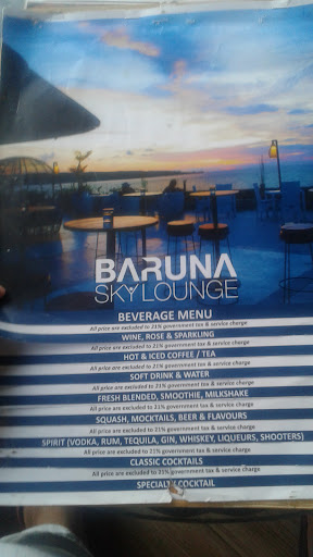 Read moreTempatnya ada di deket pantai kedonganan. Sekitar 10-15 menit dr bandara ngurah rai. Baruna sky lounge berada di rooftop nya hotel jimbaran bay and resort. Begitu masuk kedalam sangat bagus. Pelayanan juga baik dan ramah. Kolam renang dan restauran berada di lantai 1. Kolam renang bagus dan luas. Dr roof top kita bisa melihat indahnya sunset kepas pantai jimbaran.pokoknya merupakan pengalaman tersendiri jika bedara disini. Ad live music DJ yg mengiringi sore menjelang sunset sampai malam.tempat duduk juga luas dan tinggal pilih senyaman kita.pelayanan juga cepat.makanan dan minuman enak.cm harganya lumayan mahal untuk minuman dan makanan.minuman mulai tea dr 30k, coffe 40k,juice /smothie 50k, pizza 70k. Kmrn beli pizza 1 minum 3 habis 200k setelah ppn 21%. Suka sekali dan recomended. Dan kebanyakan jg yg dtg turis eropa/dr luar negri.tp g nyesel kalau...