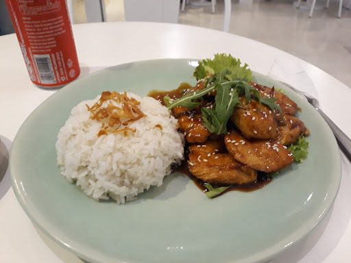 Cozy place, not hot at all even they apply an open kitchen (which is you can see them processing your food) High ceiling, wall fans, white and blue color, so calm. It's really helps us to enjoy our food without fellin like in hell. They really care about the customer.