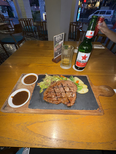 Read moreThe food was DELICIOUS!!! I ordered sirloin steak and it was perfect! Two of the souses (mushroom and pepper) weren’t needed because taste of the meat was awesome, but they were also very tasty. As dessert I took banana split and I’m not a fan of chocolate ice cream but it was surprising good so I would recommend it as a three pack in good price. Dana and Sujasmini were very kind and helpful. Food was brought fast and it was in perfect temperature. This restaurant looks very good and clean, also you can play billiards inside. I paid 420 000 Rp for all, that’s really fair...