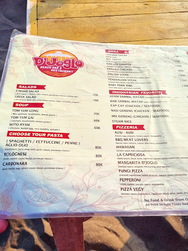 Despite its prime location and quality service, Djoglo manages to keep its prices affordable. The menu offers a good variety of dishes, from light snacks to more substantial meals, all reasonably priced. You can enjoy a satisfying meal without feeling like youâre overspending, which is a rare find at a beachside location.