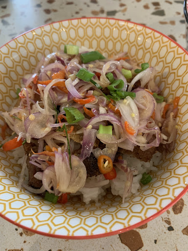 Read moreThis place is adorable. We tried the Sambal Matah Chicken with rice and Baked Garlic Butter rice with pork. I love the Sambal Matah Chicken, the taste is quite different from other cafés. I love that they put a lot of shallots on it but it's not oily as others. The portion is quite small though so if you're really hungry then you might want to order something else. The Baked Garlic Butter rice is delicious too but it tastes more like pizza then garlic butter rice. I also love the mushroom soup as it tastes really good. The Crispy Chicken Skin is also delicious as it's not too salty. The Spring Rolls however is just mediocre. But I would definitely come back again and for those who love to take pictures, this place is...
