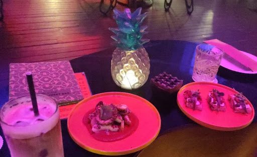 When you are in the neighbourhood. Go to the rooftop and enjoy the view and location. Order some small bites or a main dish. I ordered several small bites (tapas). First bites of the octopus arms was good of taste. Real octopus taste. Some of the pieces are tasteless. I eat before somewhere else same dish octopus but without taste, waste of your money.. I was glad to catch finally a recognizing taste now. (Pina)collada was nice to drink (strong). The lamb on bread (small pita) was terific of taste. I not have pictures of it but ansjovis bite was for some parts tastefull too. Hawaïen Pizza look a like Italian bottum pizza but have for me not the taste I suspect. I recommend to walk around. Enjoy the DJ nearby the entrance and make a dance on the dancefloor in the front of the DJ. My dancefloor freinds and I notice not so much wind by a fan or airco. To bad because after a few good dance songs we swet a lot. Anyway it was nice we could dance and having fun. "We are family" hahaha (still a good song). What minus scores is sometimes the services let waiting while its not crowded. While newarrivals take there seat and want to order at 2200. Closing time is 2300, Almost every employer placing chairs on the open areas of the rooftop. Maybe prepair for the next day. For us was this a sign to move to an...