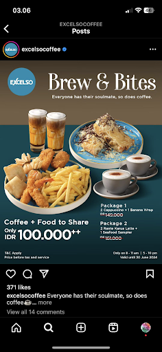 Belanja disini karena lagi ada promo BREW N BITES , HOAX ! Saya dtg sekitar jam 5 kurang 10 mnt , mau order package 2 isinya 2 kopi dan mix seafood sampler , katanya tunggu dlu biar masuk jam 5 oke , setelah jam 5 blm bisa juga input order di sistem katanya mungkin jam 5 jakarta jadi waiter sekaligus cashier ini berinisiatif untuk taking order dulu nanti d input belakangan Satu jam kemudian dia dtg lagi, katanya ga bisa di input untuk package 2 , bisanya cuma package 1, jadi mix samplernya harus dibyar sndiri dan dia keluarin banana wraping aka pisang goreng .. So i mean like , come on .. ngapain bikin promo yg karyawannya aja ga ngerti , (ga bisa di input ? ) whattttt.. ngapain di jual, mau koment ke ig excelso aja komen di limited why ? Seafood sampler apaan isinya kentang , ayam seuprit di balut tepung tebel, bakso instan yg di belah 2 , sosis dan kentang for 89k ????? Ckckck .. Mengecewakan bgt buat saya yg suka ngopi, rasanya b aja , rante karua nama aja keren ga sekeren rasanya , apa karena beli promo jadi kualitasnya di turunin entahlah Tolong dongg d perbaiki lagi tu kualitas dan servicenya , banyak saingan looo masa gtu sih kalah sama...
