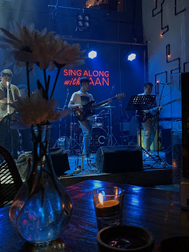 Live music is cool, dj is not so bad though not extraordinary, food 7 out of 10, a little bit overpriced but understandable because of location wise, toilet's clean, parking spot is comfortable.