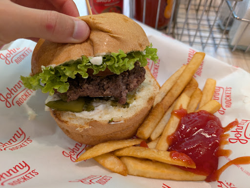 Read moreWas once a big favourite classic American Diner that delivered big on taste and great ingredients. It seems Johnny Rockets have recently made massive cuts in their produce quality. We ordered chilli cheese fries which I LOVED when I first tried it years ago. This time, they were served in a metal basket with a thin paper base as a plate... Chips mediocre, chilli was under cooked, underseasoned beef sauce and the cheese was tasteless cheese sauce. What happened to oosing melted tasty cheese? Bitterly disappointing! Burger was equally tasteless and tepid, with zero zing and personality. This experience of Johnny Rockets was nothing but a highly disappointing version of an old concept. They have skimped on food quality to subsidise high-rent premium premises while maintaining margins. Never again for me. If you're looking for a fun diner ambiance and friendly service, but don't care about flavour then you might enjoy this Johnny Rockets. Otherwise, don't...