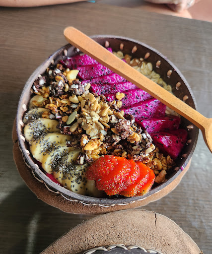 Read moreI stopped by Jimbaran Fish Market with my wife. On the way back to Seminyak, I ordered a smoothie bowl and ate it, and it was delicious because it was carefully topped with various fresh fruits. I came to feel the taste and kindness at the same time, which is why this store has a perfect rating. The store is small, so I ate quickly and was conscious of the customers waiting outside, but it was nice to see a young couple eagerly welcoming customers and preparing food. It was so cute to see their daughter standing next to her mother doing her homework...